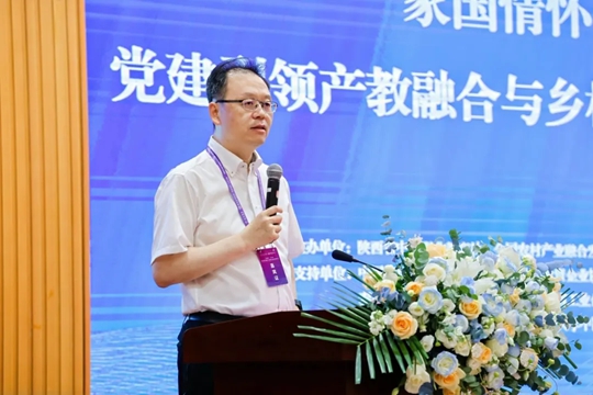中央党校原副校长赵长茂致辞并作主旨演讲《习近平经济思想之新质生产力》,中国和平统一促进会原副秘书长、中华职业教育社原副总干事韩晓光,全国农村产业融合发展联盟秘书长路亚洲,中国外商投资企业协会副会长、开发区工作委员会常务副会长张召堂,中国市场调查研究中心主任沈广忠,陕西省决策咨询委员会副主任、陕西省政协原副主席李进权等6位领导、专家学者围绕“家国情怀·产业兴国”主题,聚焦“新质生产力”,产业需求和推动专业升级,搭建服务平台、培养乡村振兴人才、促进经济发展等方面进行了深入浅出的诠释和解读,讲话站位高、立意新、举措实,为高校擘画了党建引领产教融合与乡村振兴高质量发展的壮美画卷。