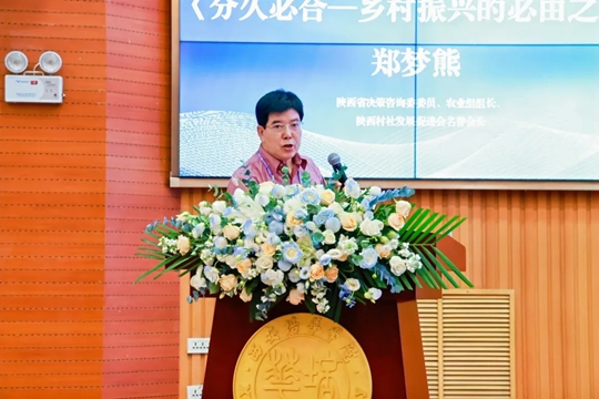陕西省决策咨询委员会委员、农业组组长、陕西村社发展促进会名誉会长郑梦熊作了题为《分久必合—乡村振兴的必由之路》报告