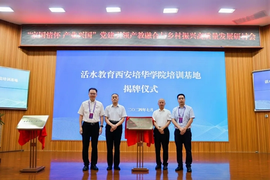 中央党校原副校长赵长茂,陕西省决咨委副主任、陕西社会主义学院院长、省政协原副主席李进权,西安培华学院理事长姜波以及活水教育集团董事长童国良共同为活水教育西安培华学院培训基地揭牌