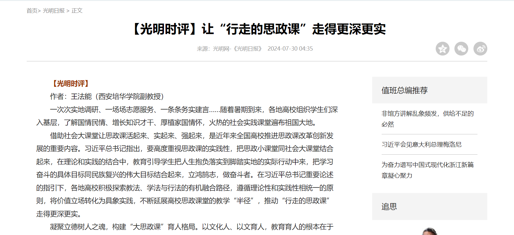 办好“行走的思政课”,在实践教学中把道理讲清楚、讲明白、讲透彻,让思政课更加可感可知、生动鲜活,必将使更多青少年在行走中成长成才,让青春在火热社会实践中绚烂绽放。