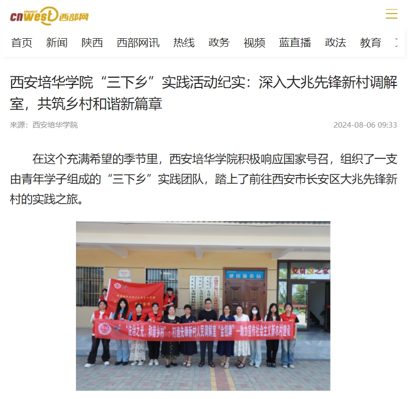 在这个充满希望的季节里,西安培华学院积极响应国家号召,组织了一支由青年学子组成的“三下乡”实践团队,踏上了前往西安市长安区大兆先锋新村的实践之旅。