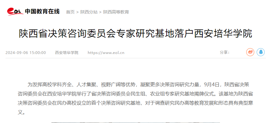 为发挥高校学科齐全、人才集聚、视野广阔等优势,凝聚更多决策咨询研究力量,9月4日,陕西省决策咨询委员会在西安培华学院举行了省决策咨询委员会民生组、农业组专家研究基地揭牌仪式。该基地为陕西省决策咨询委员会在民办高校设立的首个决策咨询研究基地,对于调查研究民办高等教育发展和形态具有典型意义。