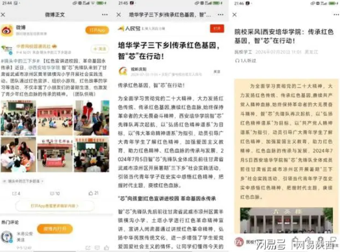 依托学校、学院、社区以及各街道办,开展红色延安精神的宣讲,开展红色寻访,用切身体验感染青年,感受延安精神,广泛开展宣讲28次,收获网络调查问卷1000余份,撰写调研报告1篇,同时,开展红色寻访,用切身体验感染青年,感受延安精神,利用微信公众号、抖音等新媒体平台推送延安红色知识普及,团队稿件先后被中青校园、人民日报、搜影中国、民校学工等媒体转载报道。