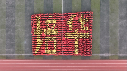 更令人激情澎湃、耳目一新的便是花样方阵的精彩表演。同学们以娴熟的动作时儿变换队形,排列成战斗机歼-20图案,展现我国傲人的军事实力;时儿排列出“1928”“1935”“1945”“1951”“1952”“1953”“1956”“1984”“2023”等数字,展示波澜壮阔的“七迁其史、九易其名”的校史,期待百年培华再绽新颜;时儿摆出“1949-2024”“国旗+75”“党徽”“国旗”的图案祝福伟大祖国生日快乐,展现出以吾辈之青春,捍卫盛世之中华的勇气与决心,把军事表演推向了高潮。