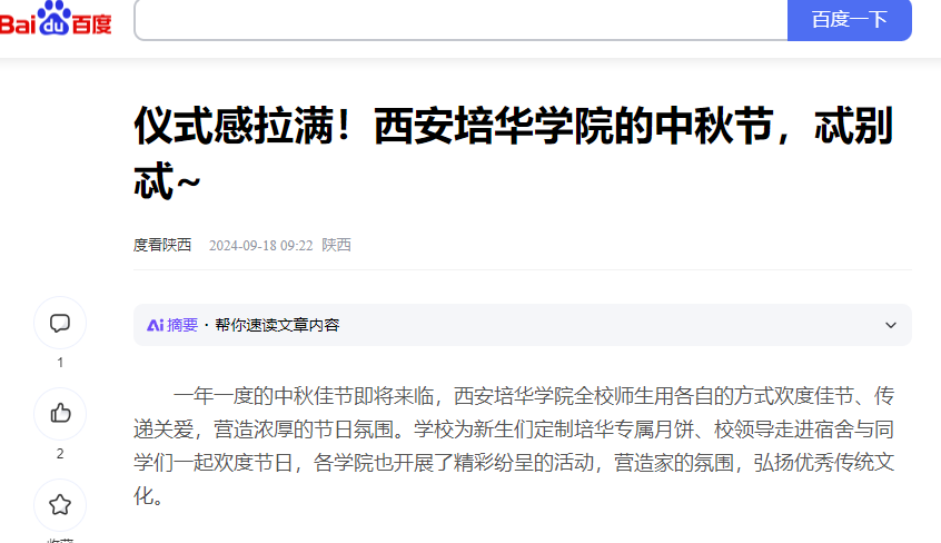 一年一度的中秋佳节即将来临,西安培华学院全校师生用各自的方式欢度佳节、传递关爱,营造浓厚的节日氛围。学校为新生们定制培华专属月饼、校领导走进宿舍与同学们一起欢度节日,各学院也开展了精彩纷呈的活动,营造家的氛围,弘扬优秀传统文化。