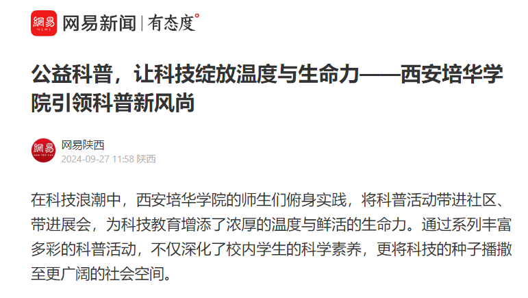 为了践行“弘扬科学家精神,激发全社会创新活力”的使命,西安培华学院积极参与并组织了一系列群众性科普活动。