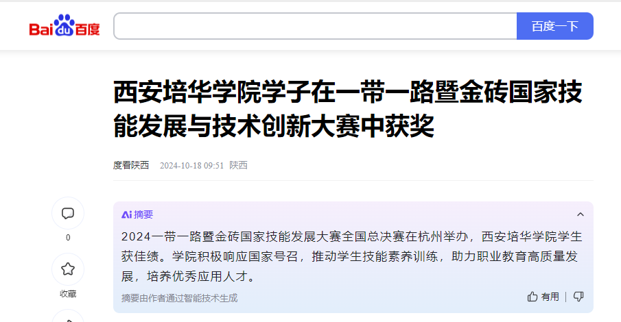 西安培华学院智能科学与工程学院本次参赛取得的成绩,不仅证明了参赛学生的专业能力和技能水平,也体现了学院在培养高素质技术技能人才方面所作出的努力和取得的成果,将有助于师生大力弘扬工匠精神,促进社会对劳动和技能的重视,推动职业教育高质量发展,为社会培养更多优秀的应用型专门人才。后续,学校将继续以学科竞赛为抓手,进一步加强学科专业建设和教学改革创新,提升学生实践能力和创新思维,为国家建筑事业高质量发展培养更多的优秀人才。