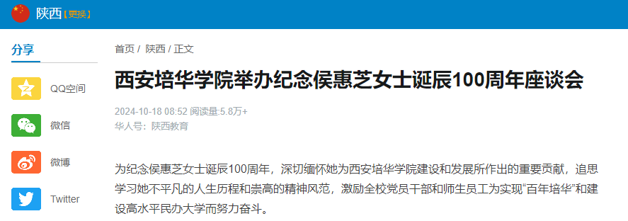 为纪念侯惠芝女士诞辰100周年,深切缅怀她为学校建设和发展所作出的重要贡献,追思学习她不平凡的人生历程和崇高的精神风范,激励全校党员干部和师生员工为实现“百年培华”和建设高水平民办大学而努力奋斗。