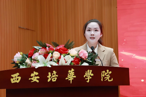 西安培华学院会计与金融学院的黄菁代表我校学生,和大家分享了她在大学三年中的成长与探索故事,得益于学校开设的相关活动和课程,本人在学校、社会实践等方面都已取得卓越的成就。面对爱情与婚姻,她提到,要以一颗平常心去面对爱情和婚姻的挑战与机遇;要以一颗真诚心去对待自己和他人的每一份感情;要以一颗进取心去追求个人成长和幸福。
