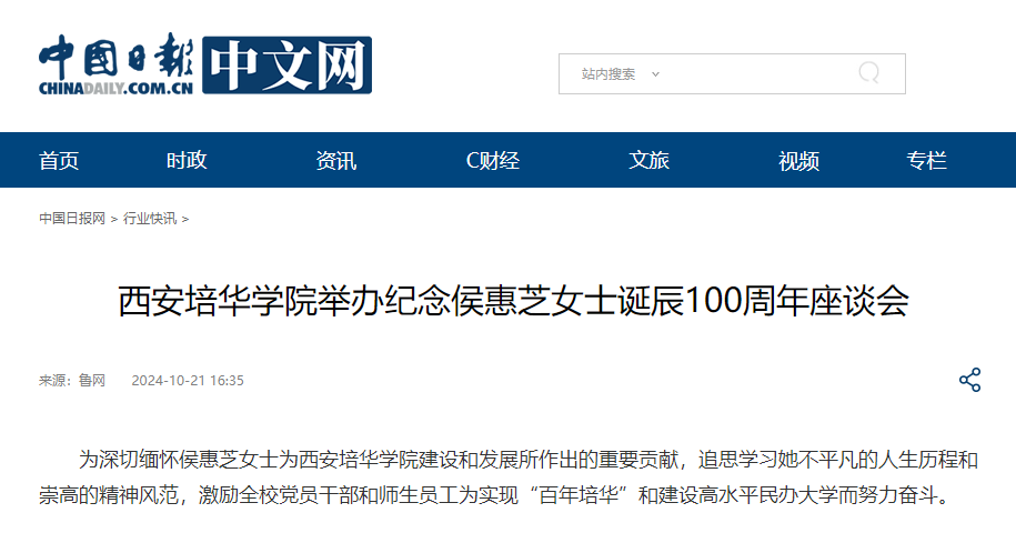 为纪念侯惠芝女士诞辰100周年,深切缅怀她为学校建设和发展所作出的重要贡献,追思学习她不平凡的人生历程和崇高的精神风范,激励全校党员干部和师生员工为实现“百年培华”和建设高水平民办大学而努力奋斗。