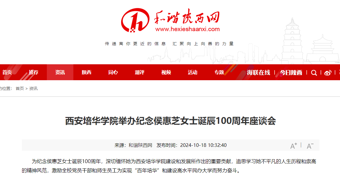 为纪念侯惠芝女士诞辰100周年,深切缅怀她为西安培华学院建设和发展所作出的重要贡献,追思学习她不平凡的人生历程和崇高的精神风范,激励全校党员干部和师生员工为实现“百年培华”和建设高水平民办大学而努力奋斗。