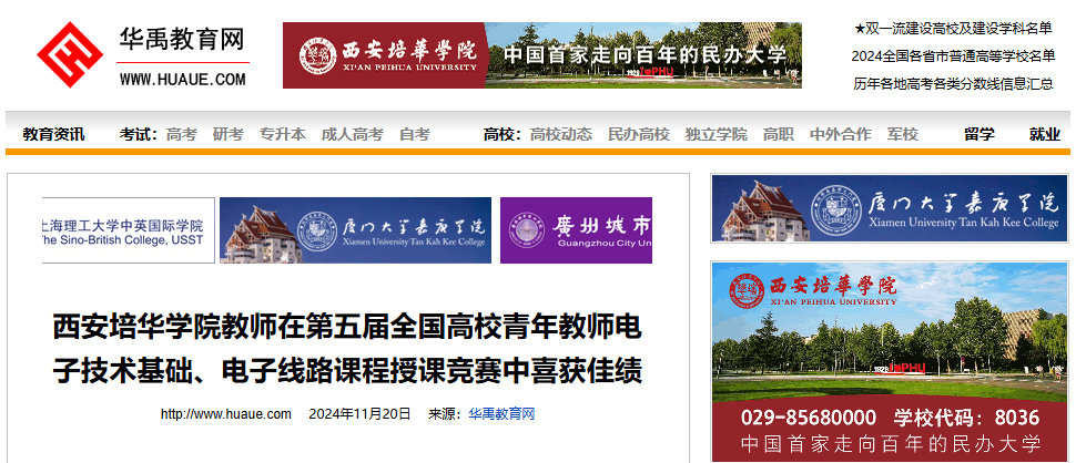 来源:西安培华学院教师在第五届全国高校青年教师电子技术基础、电子线路课程授课竞赛中喜获佳绩_华禹教育网