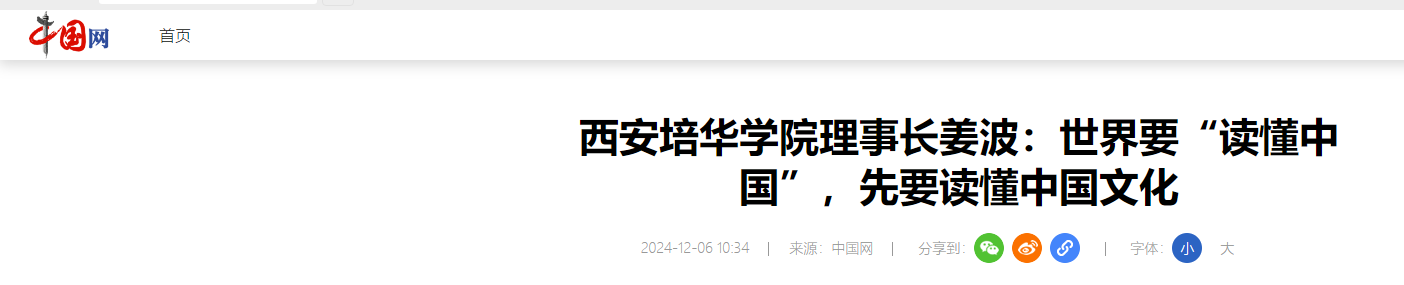 “改革开放是党和人民事业大踏步赶上时代的重要法宝。”受邀出席2024年“读懂中国”国际会议(广州)的世界华人协会副会长、世界杰出华人获奖者、西安培华学院理事长姜波在会上表示:世界要读懂中国,首先要读懂中国的文化。他在研讨会上推广了博大精深、源远流长的中华民族优秀传统文化,并向在场嘉宾介绍“中国”的由来,以及背后的文化意蕴,激发了现场嘉宾对中国优秀传统文化探索与学习的浓厚兴趣。