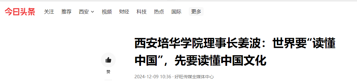 “改革开放是党和人民事业大踏步赶上时代的重要法宝。”受邀出席2024年“读懂中国”国际会议(广州)的世界华人协会副会长、世界杰出华人获奖者、西安培华学院理事长姜波在会上表示:世界要读懂中国,首先要读懂中国的文化。他在研讨会上推广了博大精深、源远流长的中华民族优秀传统文化,并向在场嘉宾介绍“中国”的由来,以及背后的文化意蕴,激发了现场嘉宾对中国优秀传统文化探索与学习的浓厚兴趣。