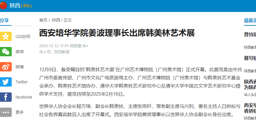 世界华人协会会长程万琦、副会长韩美林、主席张雨轩、常务副主席马兴利、著名主持人白岩松与社会各界嘉宾数百人出席了开幕式。西安培华学院姜波理事长以世界华人协会副会长身份出席。