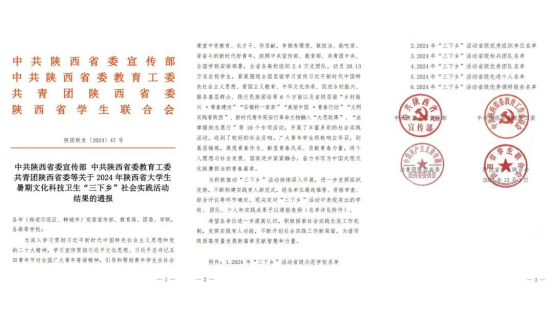 近日,中共陕西省委宣传部、中共陕西省委教育工委、共青团陕西省委、陕西省学生联合会联合印发文件,通报了2024年陕西省大学生暑假文化科技卫生“三下乡”社会实践活动结果,西安培华学院凭借卓越的组织能力荣获多项省级荣誉。
