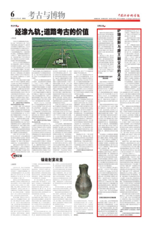 12月13日,西安培华学院科研管理中心副主任朱利民的历史考古理论文章《萨珊波斯与唐王朝交往的见证》在《中国社会科学报》第3035期A06版“考古与博物”专版通栏发表(文章系国家社科基金项目“唐代胡人都市生活研究”21XKG004阶段性成果)。这是培华历史考古成果首次在该权威学术报刊亮相。