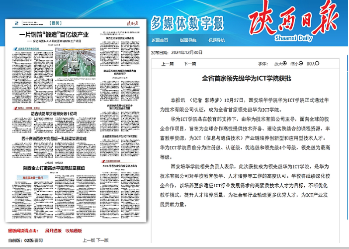 西安培华学院相关负责人表示,此次获批成为领先级华为ICT学院,是华为技术有限公司对学校教育教学、人才培养等工作的高度认可。学校将继续深化校企合作,以培养更多适应ICT行业发展需求的高素质技术人才为目标,不断优化教学模式,提升人才培养质量,为社会和行业输送更多优秀人才,为ICT产业发展贡献力量。