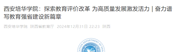 2024年以来,西安培华学院进一步明晰教育强国建设中民办高校的使命担当,持续贯彻落实《深化新时代教育评价改革总体方案》,夯实教育教学质量保障体系建设,从教师评价、学生评价、专业评价、数字赋能等方面入手,积极推进教育评价改革,为学校高质量发展注入新活力。