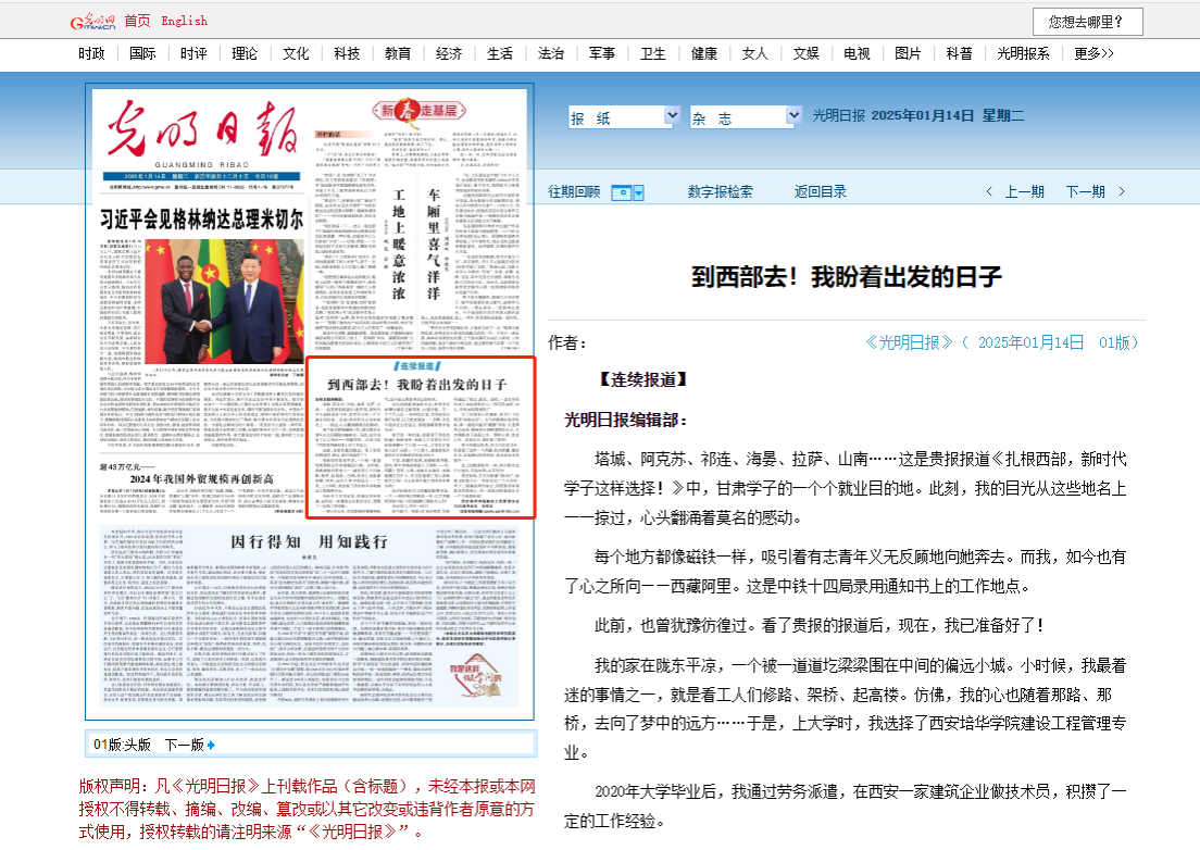 似乎是一种机缘,我看到了贵报的报道!细细读来,我被文中甘肃学子们的故事戳中了心窝——这,才是有价值的人生!而我,一个工程人,最能体现价值的不正是最艰苦的地方吗?!