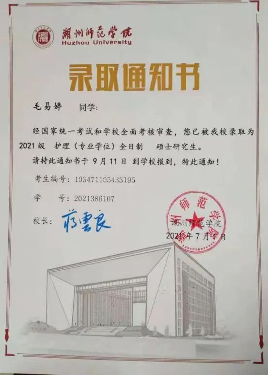 毛易婷,西安培华学院2016年级护理学专业学生,考入湖州师范学院攻读护理学硕士研究生。