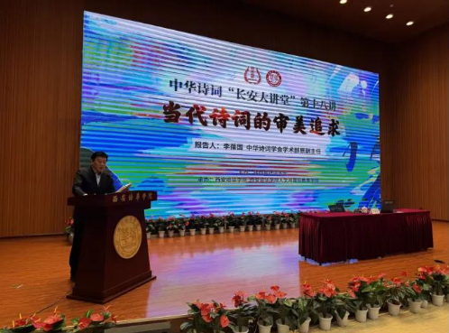 2025年3月15日,由陕西省诗词学会主办,西安培华学院及学校人文与国际教育学院承办的中华诗词“长安大讲堂”第十八讲,在西安培华学院维之图书馆报告厅圆满举行。本次讲座聚焦“当代诗词的审美追求”,特邀中华诗词学会学术部原副主任李葆国先生担纲主讲。来自全国各地的诗词爱好者、西安培华学院人文与国际教育学院中文系全体教师以及部分学生,共计400余人齐聚一堂,共享这场诗词盛宴。