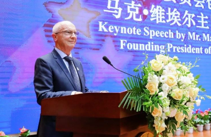 座谈结束后,“国际奥艺委创始主席马克・维埃尔‘友谊之树’冠名仪式”在图书馆前广场举行,象征着双方深厚的情谊和坚实的合作关系,见证未来的携手共进。