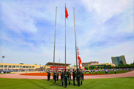 智能科学与工程学院学子执旗为剑,以钢铁之躯演绎精忠报国,红旗漫卷似燃烧的二进制烈焰。