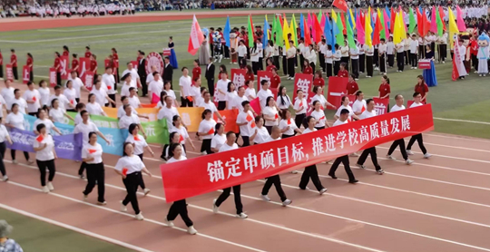机关教工方阵高举培华,“职业教育、女性教育、红色教育”三大特色基因,锚定申硕目标,推进学校高质量发展,他们展育人者之担当,显奋进者之光芒,从培根铸魂的初心,到师生同心的凝聚,从百载峥嵘的积淀,到年华璀璨的绽放,他们以智慧为舟,以奉献为桨,在教育的星河中领航。
