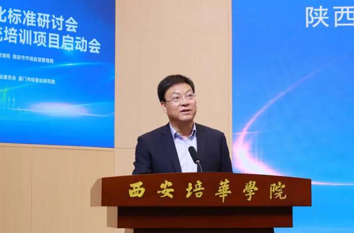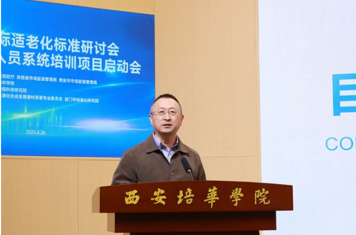 4月26日,由陕西省民政厅、陕西省市场监督管理局、西安市市场监督管理局指导,西安培华学院联合中标智信科技研究院共同举办的2025国际适老化标准研讨会暨标准研制人员系统培训项目启动会在西安培华学院召开。中国标准化协会家居建材质量专业委员会、厦门市标准化研究院提供支持。原国务院应急专家组组长、原国务院参事闪淳昌,原国务院参事、国家制造强国战略咨询委员会委员张纲,国家市场监督管理总局标准创新管理司原司长崔钢,陕西省政府国有资产监督管理委员会原党委书记、陕西省工业经济联合会会长孙安会,西安培华学院理事长姜波等领导及行业专家、学员出席会议。中国标准化协会家居建材质量专业委员会副主任委员周妍玥主持。