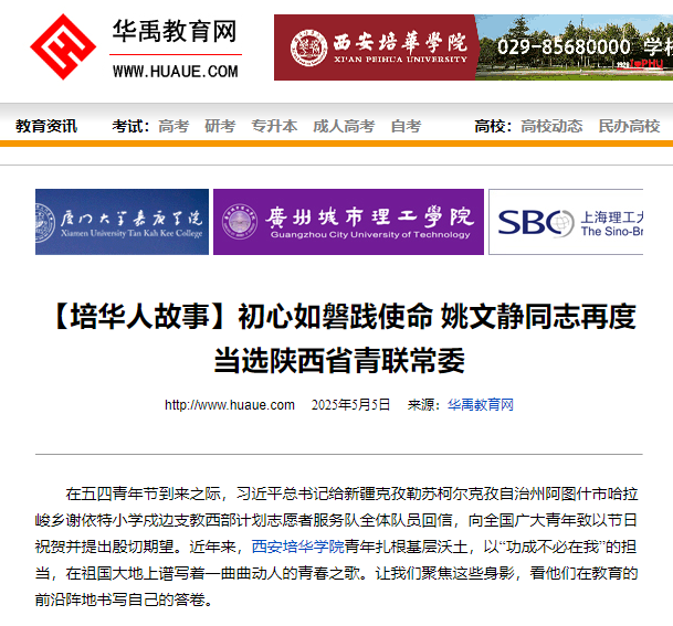 在五四青年节到来之际,习近平总书记给新疆克孜勒苏柯尔克孜自治州阿图什市哈拉峻乡谢依特小学戍边支教西部计划志愿者服务队全体队员回信,向全国广大青年致以节日祝贺并提出殷切期望。近年来,西安培华学院青年扎根基层沃土,以“功成不必在我”的担当,在祖国大地上谱写着一曲曲动人的青春之歌。让我们聚焦这些身影,看他们在教育的前沿阵地书写自己的答卷。
