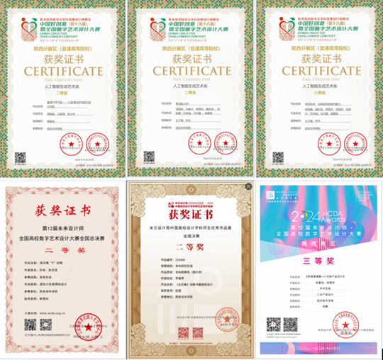 视觉传达设计专业学科竞赛屡获佳绩(部分证书)