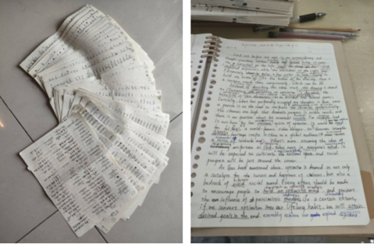“琳琳的政治学得好,经常抽查我的知识点,有一次她来给我送钥匙,还非得我背出来资本积累的知识点才把钥匙给我。”吕梦真则发挥英语优势,给她们分享阅读技巧和作文模板,三人还会用“费曼学习法”互相讲解知识点,就算是平时聊天,话锋也会经常转到自己的知识点上,在讨论中加深理解。