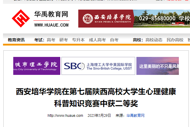5月23日,由中共陕西省委教育工作委员会、陕西省教育厅主办,西安工程大学承办的第七届陕西高校大学生心理健康科普知识竞赛暨心理素质拓展运动嘉年华在西安工程大学落幕,由西安培华学院医学院王美蔺、智能科学与工程学院林晓玲、人文与国际教育学院韩渝璐三位同学组成的“识光培你”代表队凭借扎实的心理知识功底、出色的临场应变能力及默契的团队协作能力,从全省90余所高校、270名参赛选手中脱颖而出,荣获省级决赛二等奖。