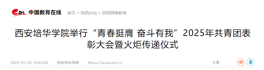 青春挺膺,奋斗有我。5月27日,西安培华学院“青春挺膺 奋斗有我”2025年共青团表彰大会暨火炬传递仪式在长安校区举行。