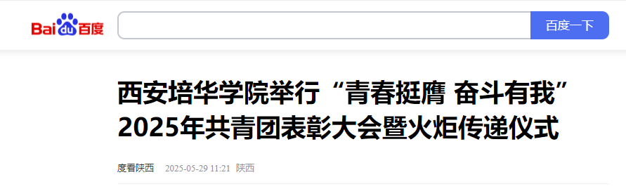 青春挺膺,奋斗有我。5月27日,西安培华学院“青春挺膺 奋斗有我”2025年共青团表彰大会暨火炬传递仪式在长安校区举行。