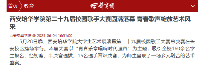 这场青春与艺术交织的盛会,不仅是一场视听盛宴,更是学校坚持“五育并举”、深化艺术育人成效的生动体现。它成功点燃了校园文化活力,为培养德智体美劳全面发展的新时代青年注入了强劲的艺术动能。未来,西安培华学院将继续深耕美育沃土,打造更具影响力的校园文化品牌,让艺术之花在培华校园持续绽放,助力青年学子在追求梦想的道路上奏响更加绚丽的青春乐章!