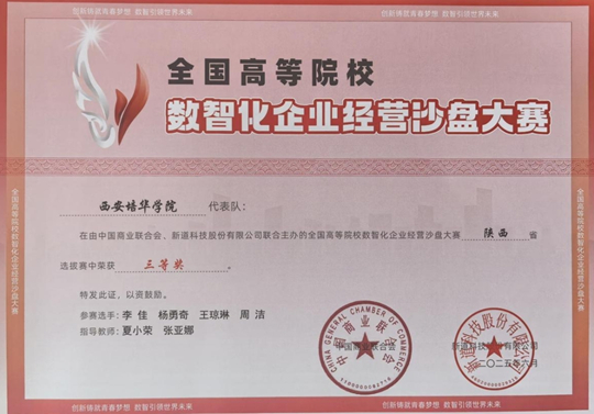 2025年5月23日至25日,第二十一届陕西省高等院校数智化企业经营沙盘大赛在陕西国际商贸学院成功举办。本届大赛由中国商业联合会、新道科技股份有限公司联合主办,陕西国际商贸学院承办,吸引了陕西省内24所本科院校的68支队伍、近400名师生参与角逐。西安培华学院派出的两支代表队中,“疯狂星期四”2队凭借出色表现荣获大赛三等奖。