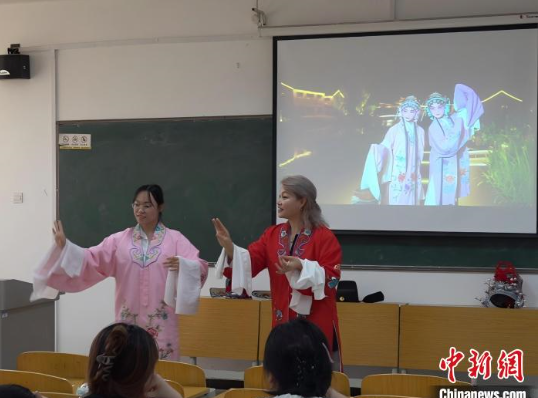 西安6月21日电 (梅镱泷 张桐若)近日,在西安培华学院教学楼内,一堂别开生面的“浸润式”戏曲鉴赏课正在进行。“课堂上体验了穿戏服、戴胡须等内容,老师还手把手教了许多戏台上表演的动作,加深了我对戏曲的了解。”学生贾少锋表示,作为年轻人应该多去接触这些知识,以更好地传承传统文化。