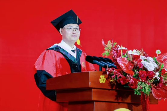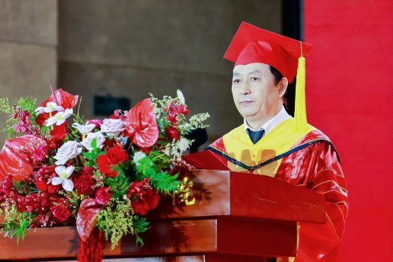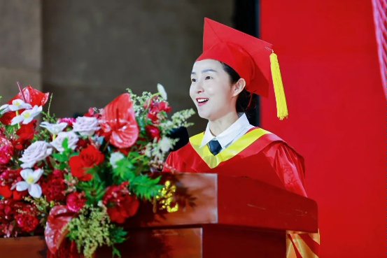 人文与国际教育学院副院长栾博强作为教师代表发言,他以“三个培华记忆”带领全体毕业生重温大学生活,并表示培华不仅传授知识,更赋予“博学、审问、笃行”的成长密码,塑造了学子们“立己达人”的培华风骨。他希望毕业生们要做一粒“向下扎根的种子”,做一座“融通古今的桥梁”,做一束“照亮他人的光源”。他号召大家勇担“强国有我,功成有我”的时代使命。