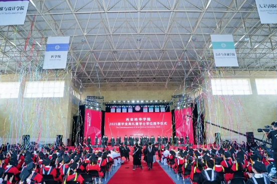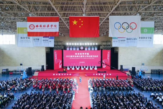 6月21日上午,西安培华学院2025届毕业典礼暨学士学位授予仪式在长安校区体育馆举行,全体校级领导、校学士学位委员会委员、教师代表、辅导员代表、毕业生家长代表、校友代表以及2025届毕业生代表2000余人齐聚一堂,共同见证毕业生们的重要时刻。典礼由校团委书记董莹与传媒与设计学院2025届毕业生窦宝阔主持。