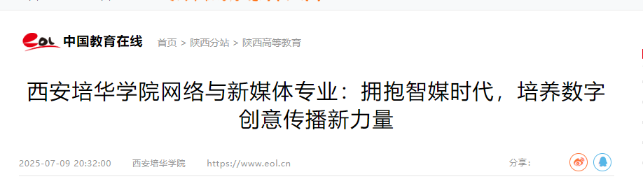 数字化浪潮席卷全球的今天,网络与新媒体行业已成为驱动信息传播变革的核心引擎。西安培华学院网络与新媒体专业立足时代前沿,以“精采编、善运营、懂技术”为培养核心,构建起产教深度融合、技术赋能创新的人才培养体系,为数字中国建设输送兼具专业素养与创新能力的复合型人才。
