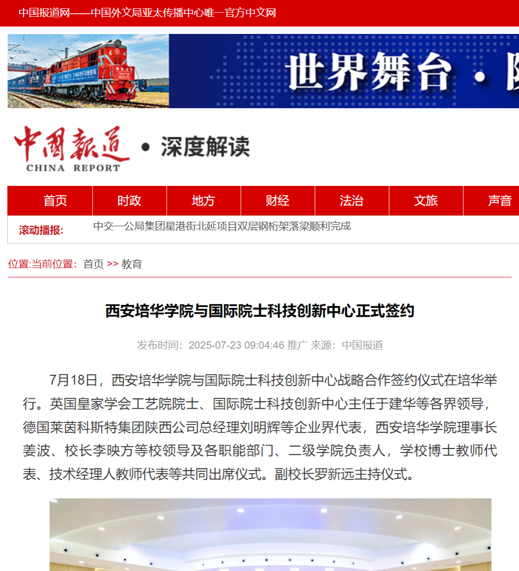 仪式上,西安培华学院校长李映方分别与国际院士科技创新中心副主任赵文杰、德国莱茵科斯特集团陕西公司总经理刘明辉签署战略合作协议。国际院士科技创新中心代表陈登奇、王鼎、赵泽阳,陕西省高校技术转移中心主任田鹏,长安区科技创新中心主任赵鹏等十余位嘉宾现场见证。此次合作聚焦人才培养、科研创新与成果转化,旨在打造“产学研用”一体化平台,为区域经济高质量发展注入新动能。