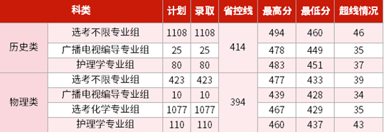 播音与主持艺术专业更以历史组最低508分、物理组最低513分圆满收官