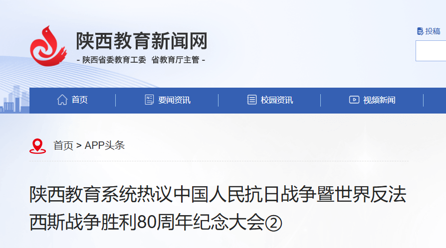 2025年9月3日,中国人民抗日战争暨世界反法西斯战争胜利80周年纪念大会在京隆重举行,中共中央总书记、国家主席、中央军委主席习近平发表重要讲话并检阅部队。陕西省教育系统广大干部师生员工高度关注,纷纷通过网络、电视、报纸、广播、微信微博等媒体收听收看大会盛况,深入学习习近平总书记重要讲话精神,习近平总书记的重要讲话在全省教育系统引发热烈反响。
