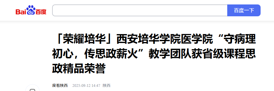近日,西安培华学院医学院王菊宁副院长和王一理教授带领的《病理学》课程团队荣获省教育厅组织开展的第三批陕西省课程思政精品课程和教学团队认定。该团队以21年深耕诠释“以病理明医理,以思政铸医德”的育人初心,成为病理教学与思政融合的典范。