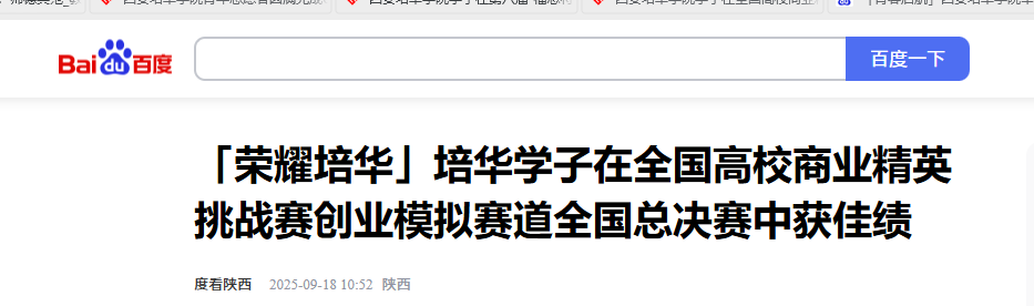 为响应国家支持大学生创新创业的号召,提升学生创新实践能力,西安培华学院积极组织学生参加2025年全国高校商业精英挑战赛创新创业竞赛“精创教育杯”创业模拟赛道比赛,最终两支队伍在全国总决赛中分别荣获一等奖和三等奖。