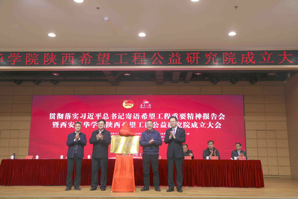 报告会上举行了全国高校首家希望工程公益研究院——西安培华学院陕西希望工程公益研究院揭牌活动,京东未来数字科技有限公司向陕西希望工程捐赠100万元公益创投基金,用于孵化、培育、资助希望工程青少年公益项目。