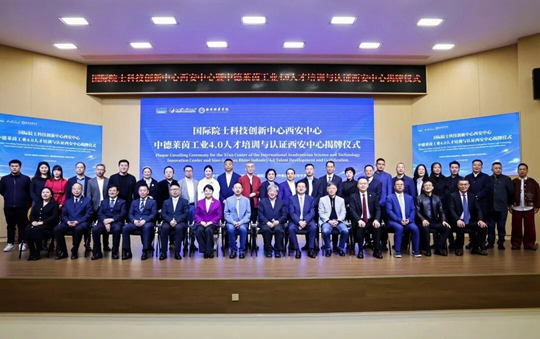 在与会嘉宾的共同见证下,英国皇家学会工艺院院士、国际院士科技创新中心主任、西安培华学院名誉校长于建华院士,陕西省工业和信息化厅二级巡视员羌薇,国际院士科技创新中心副主任兼西安中心主任赵文杰,西安培华学院理事长姜波,共同为“国际院士科技创新中心西安中心”揭牌;德国莱茵科斯特集团董事长崔智、德国莱茵科斯特集团陕西公司总经理刘明辉,陕西省科协副主席张俊华,西安培华学院理事长姜波,共同为“中德莱茵工业4.0人才培训与认证西安中心”揭牌,标志着三方合作迈入新阶段,也为陕西省产教融合发展开辟了新路径。
