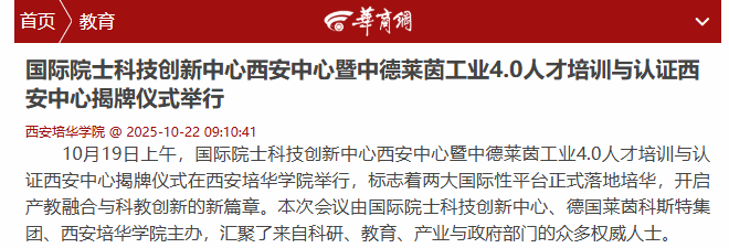 10月19日上午,国际院士科技创新中心西安中心暨中德莱茵工业4.0人才培训与认证西安中心揭牌仪式在西安培华学院举行,标志着两大国际性平台正式落地培华,开启产教融合与科教创新的新篇章。本次会议由国际院士科技创新中心、德国莱茵科斯特集团、西安培华学院主办,汇聚了来自科研、教育、产业与政府部门的众多权威人士。